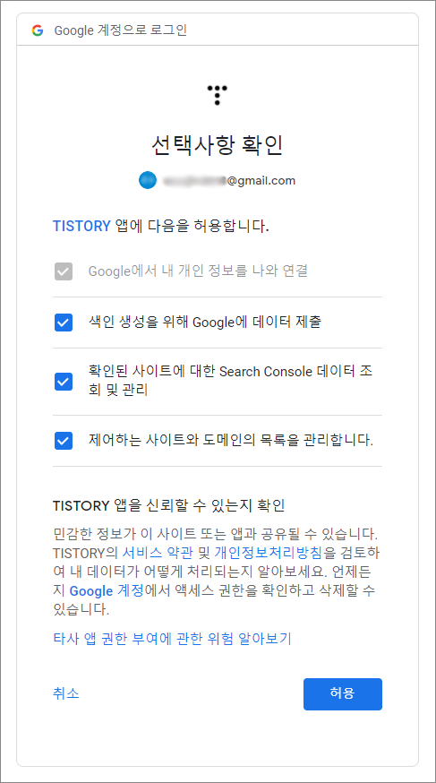 1. 티스토리 플러그인 > 구글 서치콘솔 선택