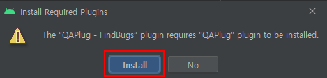 3. QAPlug - FindBugs를 사용하려면 QAPlug를 설치해야 한다는 알림 메시지. Install 선택