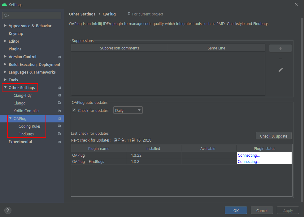 5. File > Settings > Other Settins에 QAPlug이 추가된 것을 볼 수 있다.