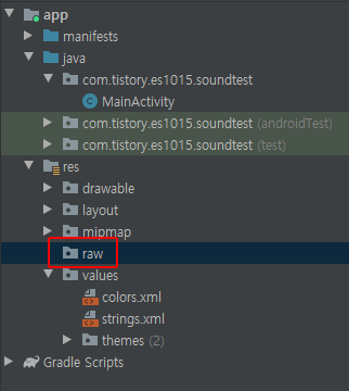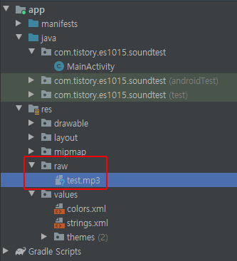 3. raw 폴더 안에 재생할 음악 파일을 추가한다.