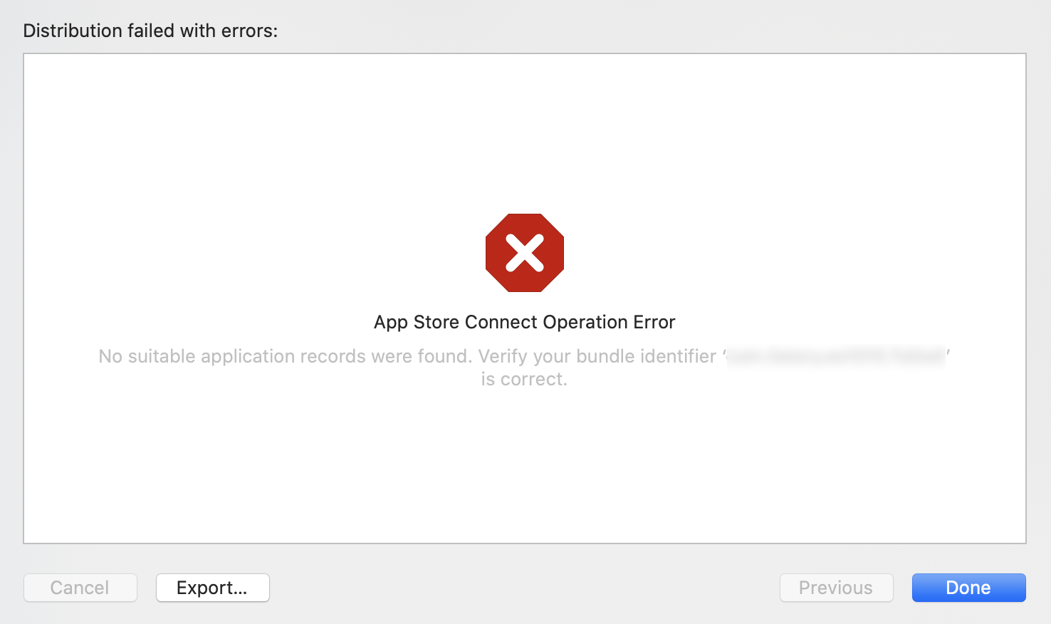No suitable application records were found. Verify your bundle identifier 'bundle' is correct.