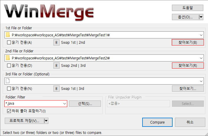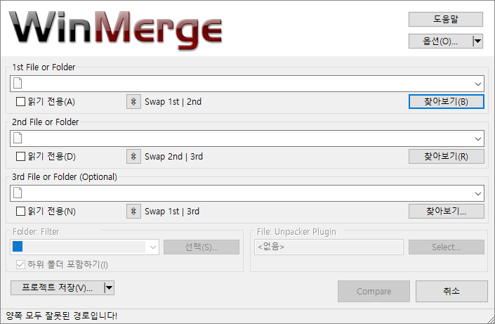 2. 1st File or Folder와 2nd File or Folder 선택 후 Compare 선택