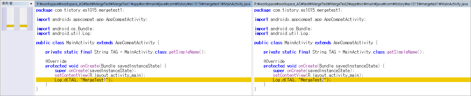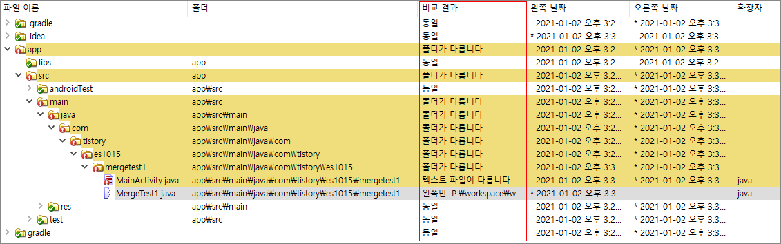 - MergeTest1.java : 왼쪽(MergeTest1 프로젝트)만 존재함