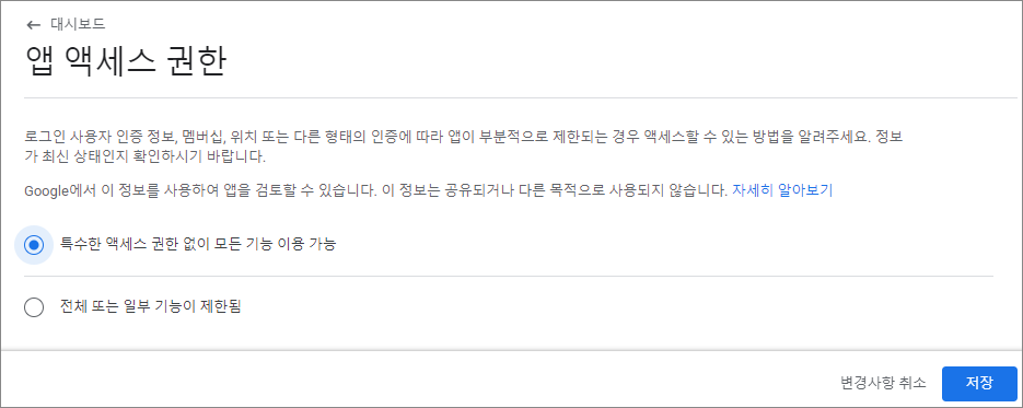 대시보드로 나오면 아래처럼 앱 액세스 권한이 완료되었다고 표시된다.