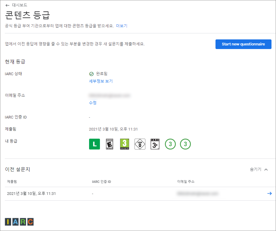 마지막으로 현재 등급과 새 설문지를 제출할 수 있는 버튼이 출력됨