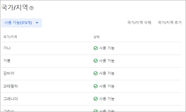국가/지역 추가 선택 후 앱을 제공할 국가/지역을 추가한다.