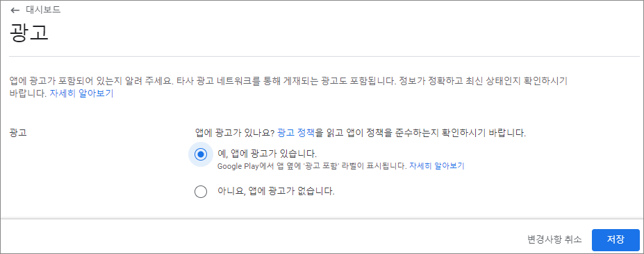 - 유료 또는 무료: 앱을 게시하기 전에는 수정 가능하나, 한 번 앱을 게시한 후에는 무료 앱을 유료로 변경할 수 없음