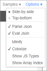 Side-by-side 방식이며, 오른쪽에 String parse와 JS eval 두 형식으로 표시됨