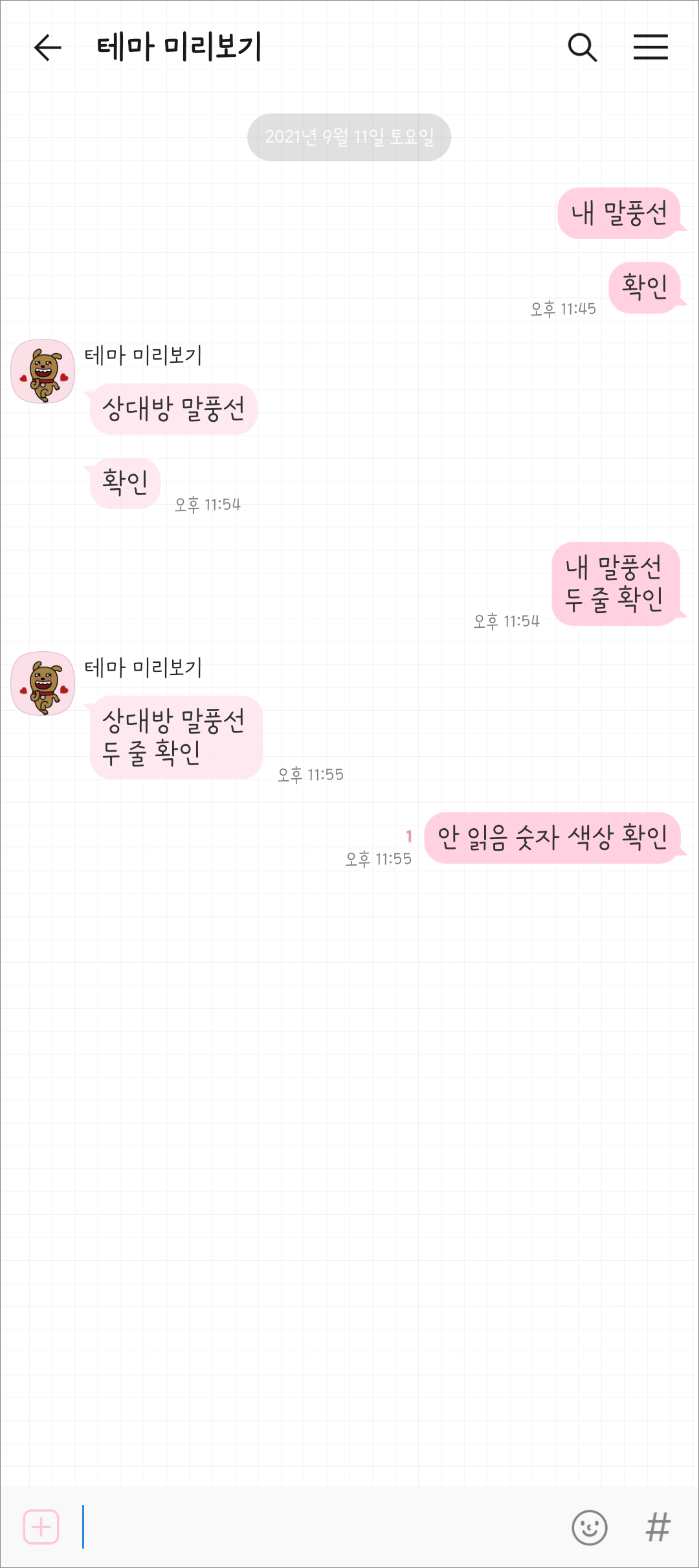 화이트 & 핑크 색상으로 제작한 심플 카톡 테마