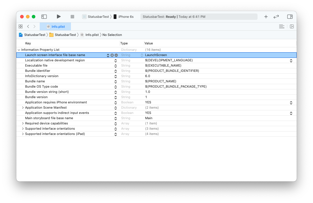 2. info.plist 파일에 LaunchStoryboard 이름 설정