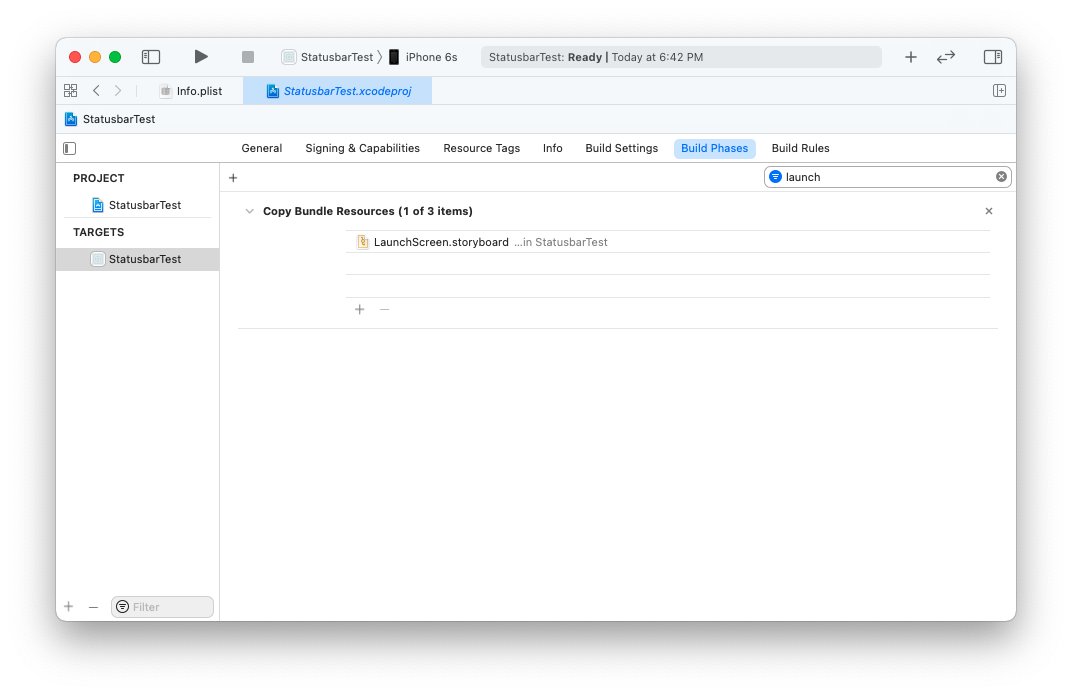 3. 프로젝트 > TARGETS > Build Phases > Copy Bundle Resources에 LaunchScreen.storyboard 파일이 존재하는지 확인