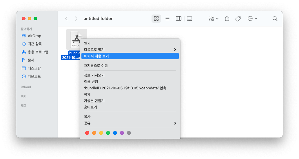 4. 생성된 파일 우클릭 > 패키지 내용 보기 선택