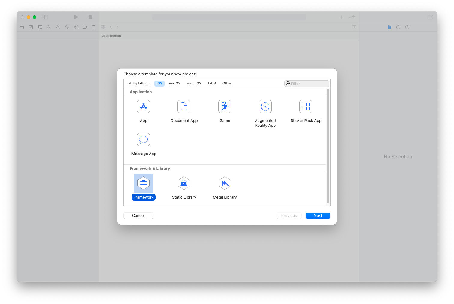 Xcode > File > New > Proejct > iOS > Framework > Next 선택