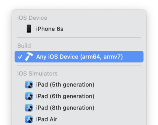 실제 디바이스 또는 Any iOS Device (arm64, armv7)을 선택 후 생성하면 실제 디바이스에서 사용 가능한 버전으로 "모드-iphoneos" 폴더에 framework가 생성되며
