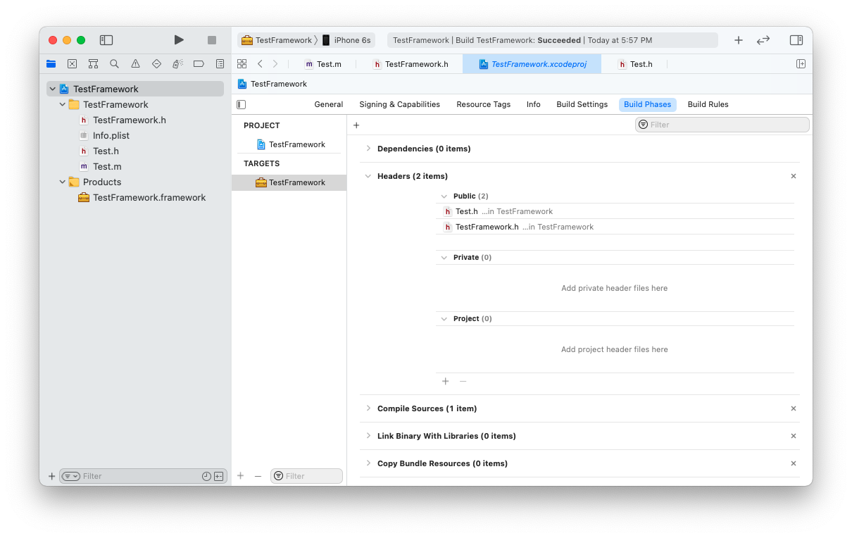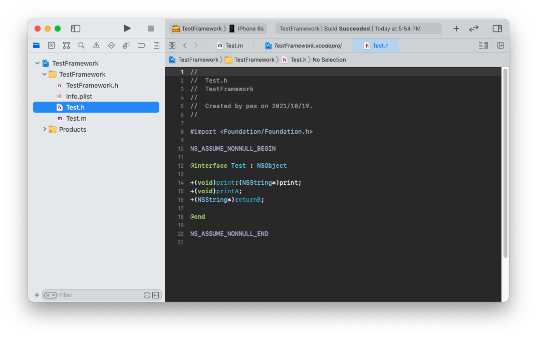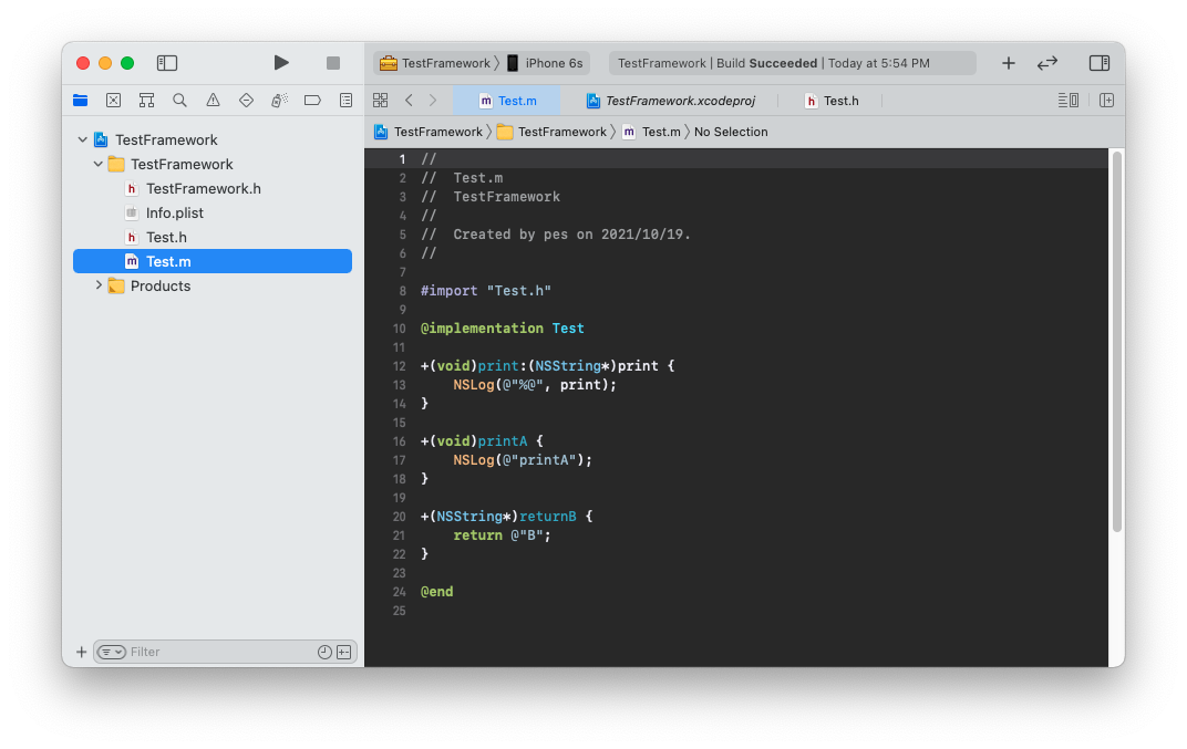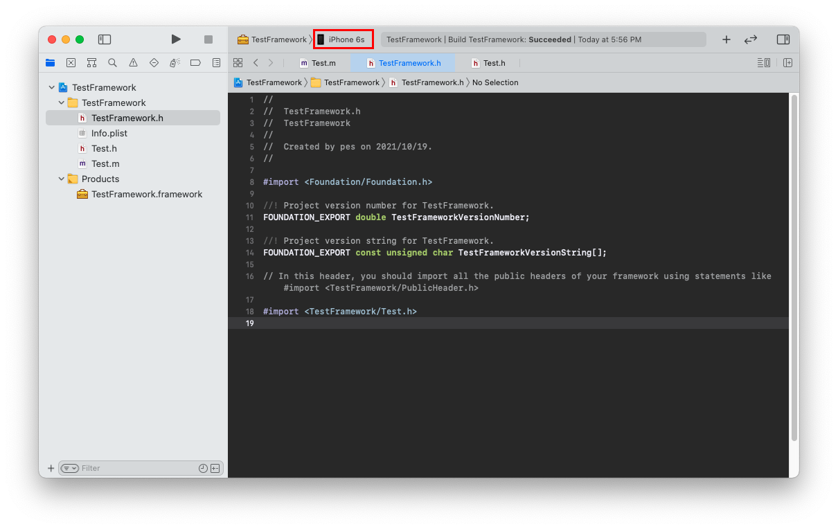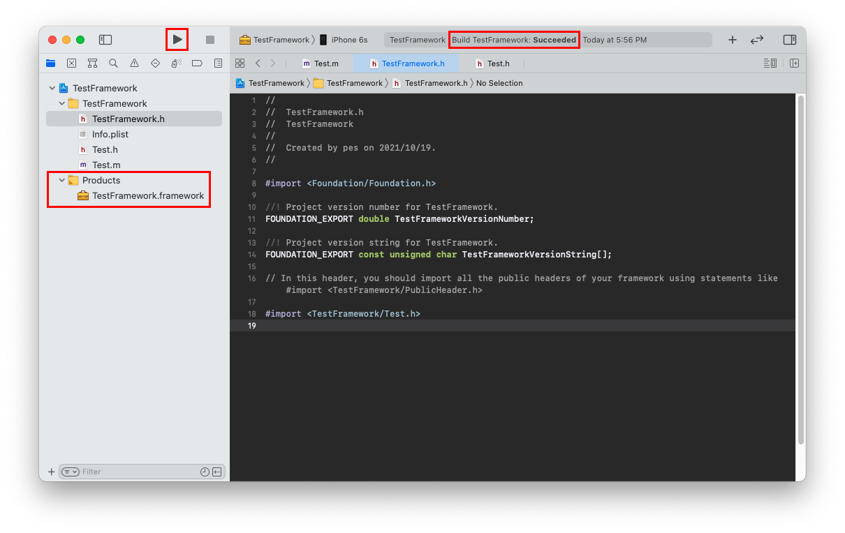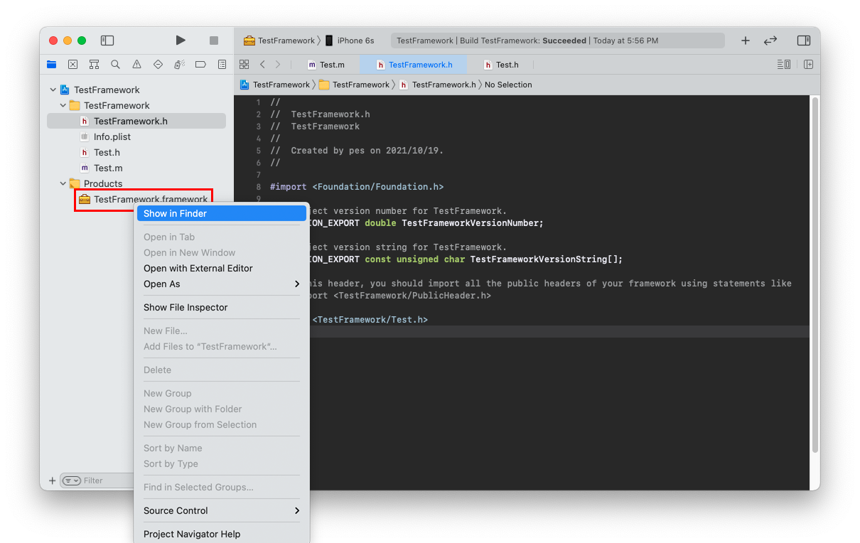Run 선택 > Build Succeeded 확인 > Products 폴더에 생성된 framework 파일 확인