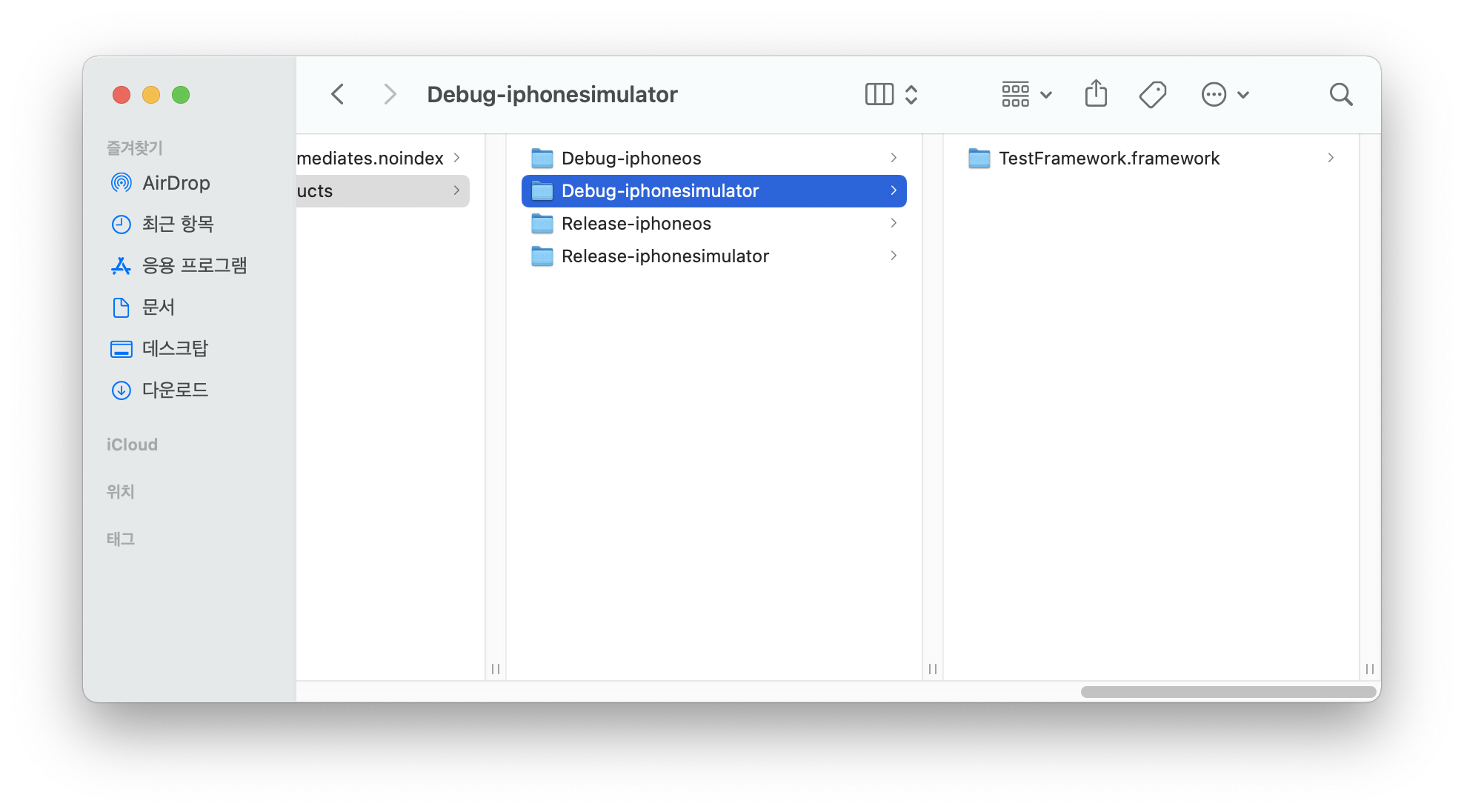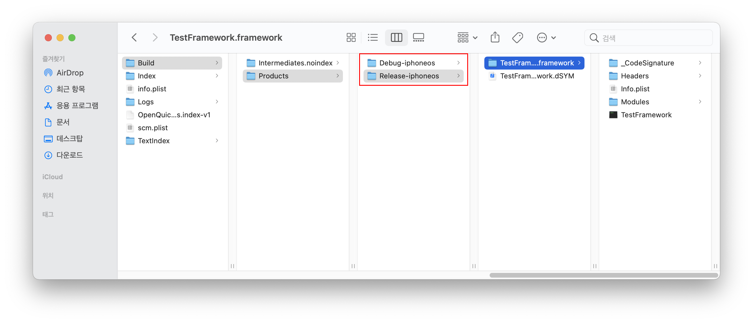 - Release용인 경우 Release-iphoneos 폴더에 파일이 생성됨