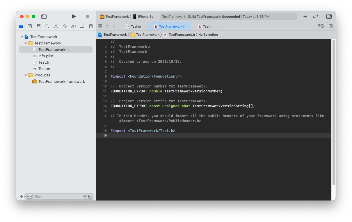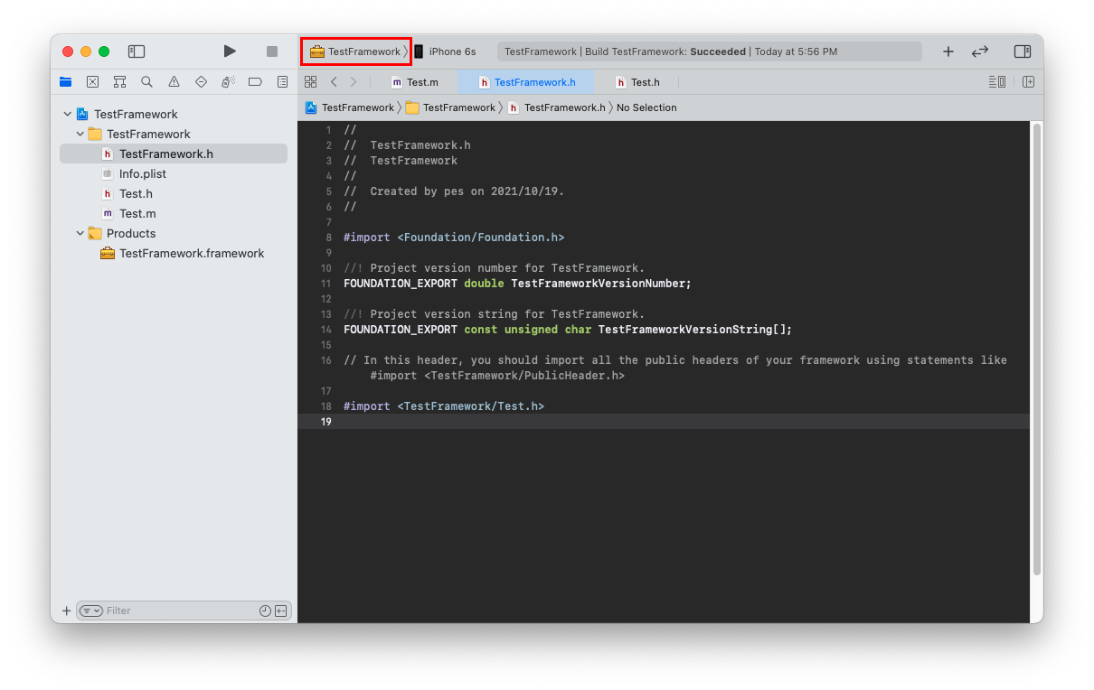 ex) #import <TestFramework/Test.h>