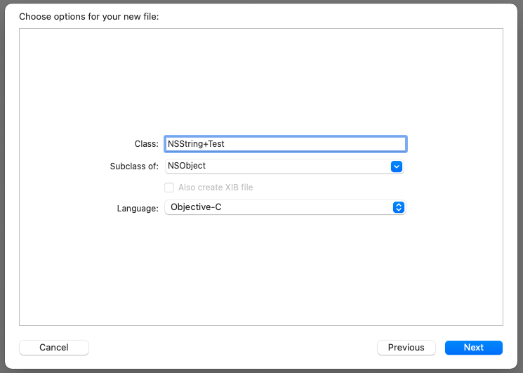 아래 사진에서는 NSString+Test 로 지정했다.