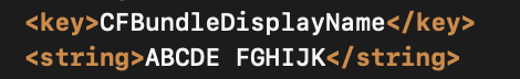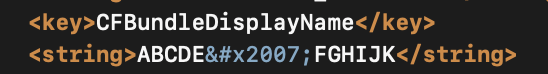 2. CFBundleName에 띄어쓰기 대신   를 입력