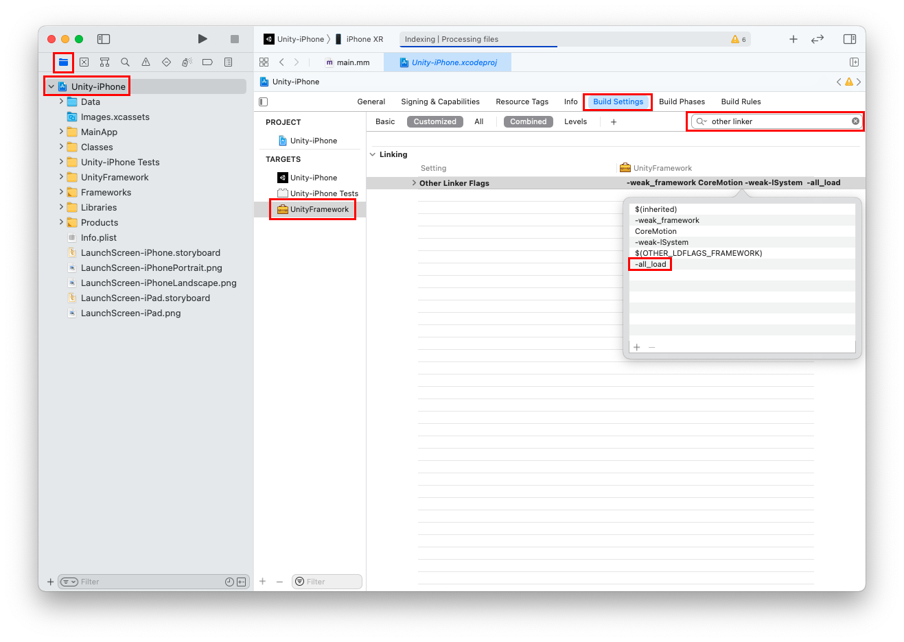 - 프로젝트 > TARGETS > 앱 > Build Settings > Other Linker Flags에 -all_load 추가