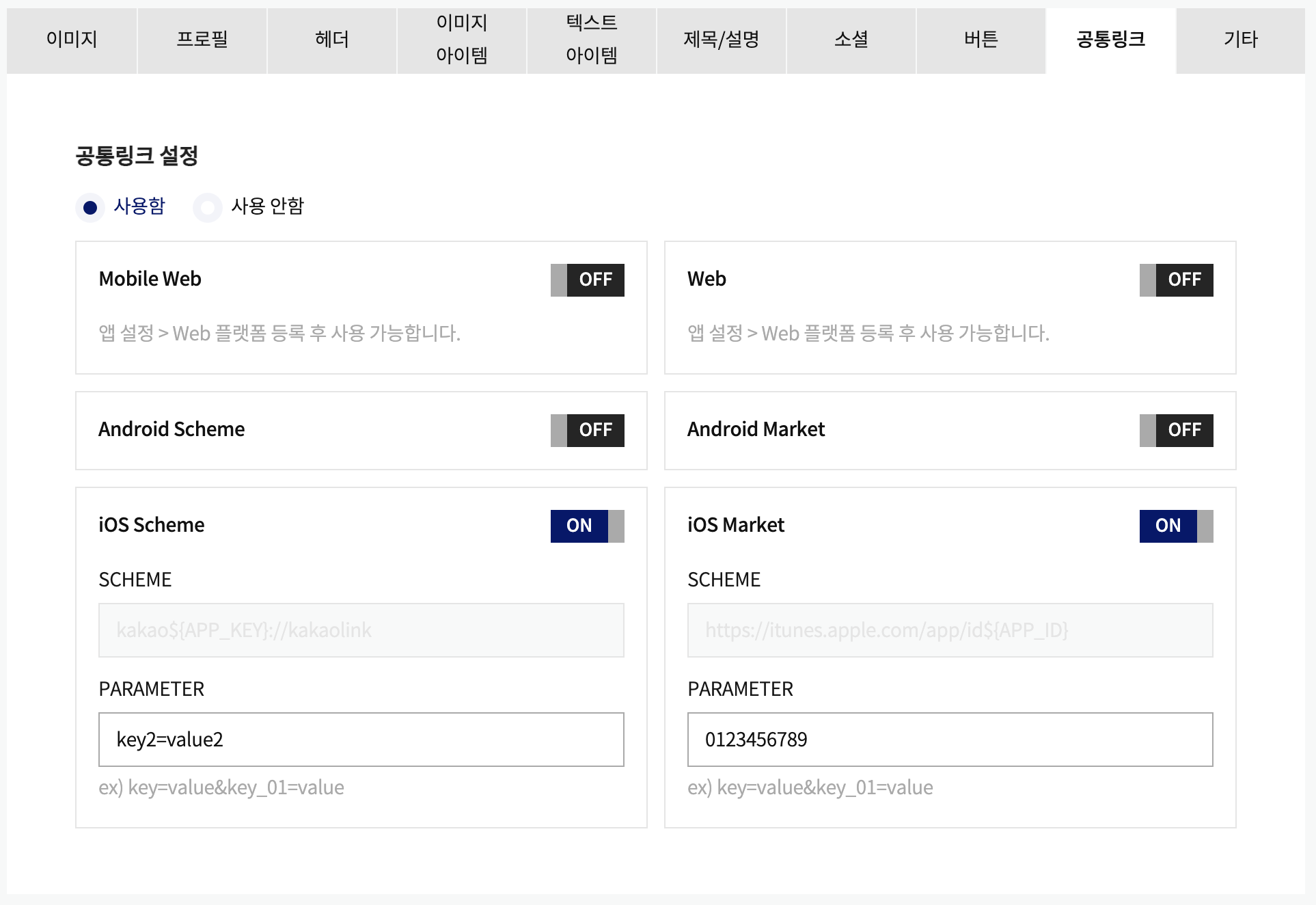// kakao123456789://kakaolink?key1=value1&key2=value2