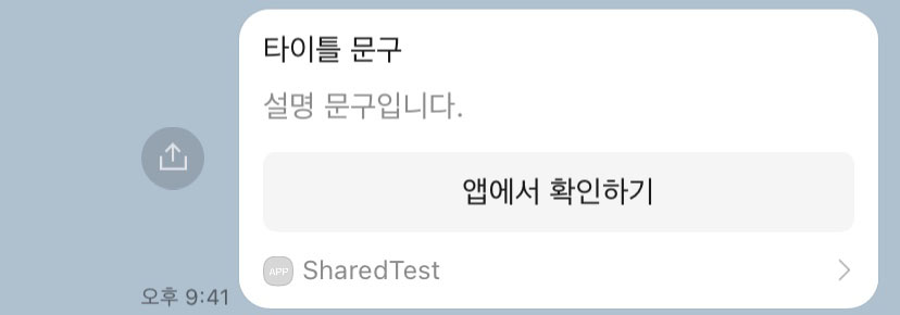 공유된 카카오 메시지에서 "앱에서 보기" 버튼 누를 시, 앱에 실행되며 SceneDelegate openURLContexts에서 아래 url를 전달받습니다.