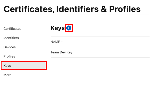 2. Keys 화면 진입 후 + 눌러 키 생성