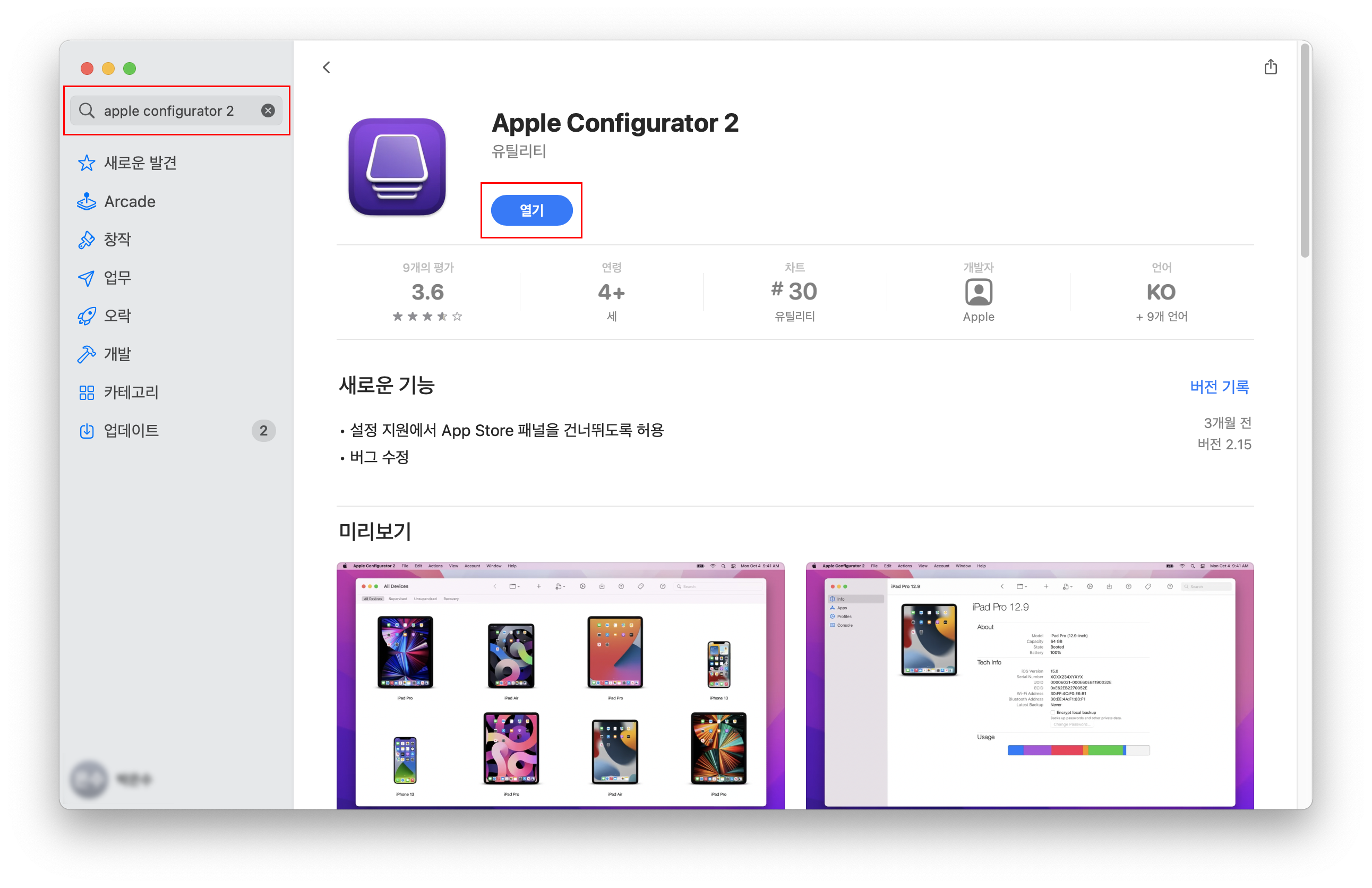 1. Mac App Store에서 Apple Configurator 2를 설치합니다.