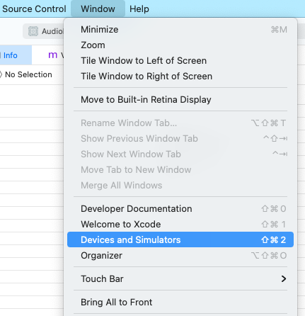 1. Xcode > Window > Devices and Simulators를 선택합니다.