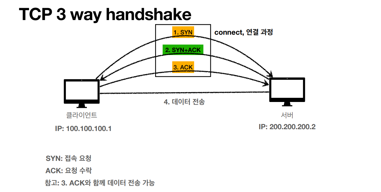◾ 연결 지향 - TCP 3 way handshake (가상 연결) - 클라이언트와 서버가 서로 연결하며 신뢰할 수 있다고 판단