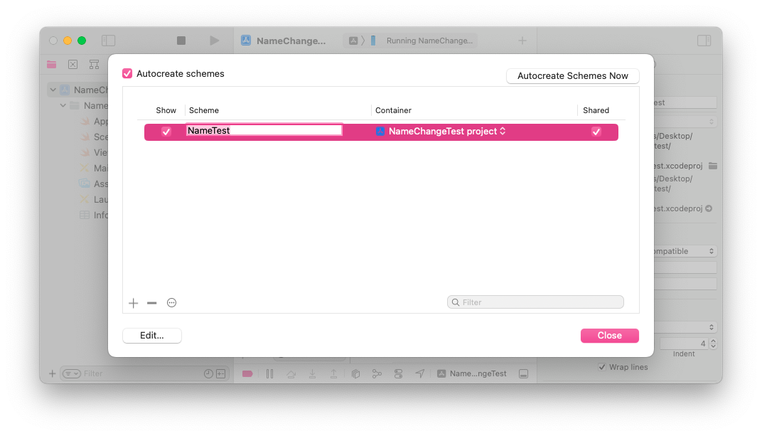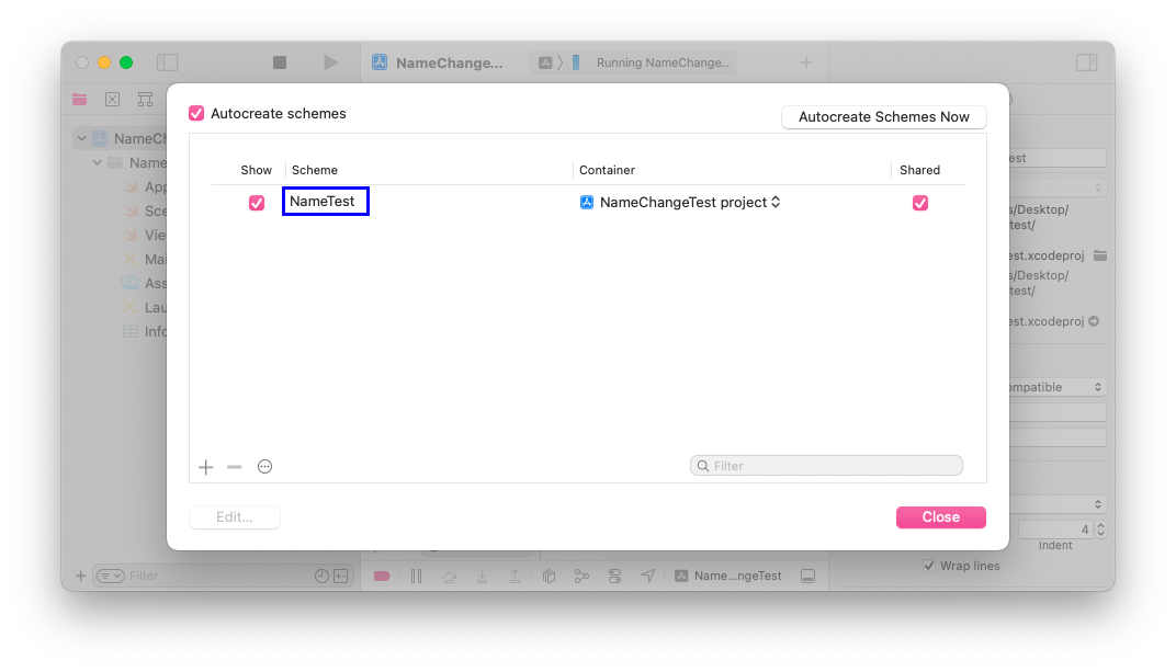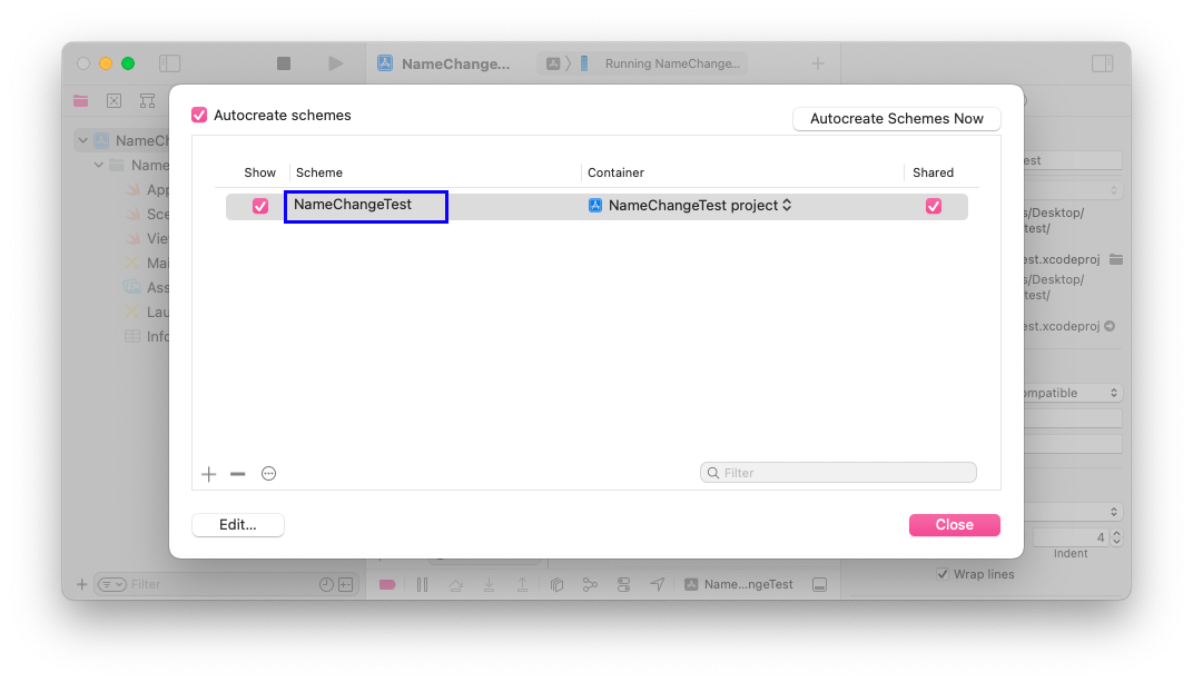 2-2. 변경할 Scheme(기존 프로젝트명) 선택
