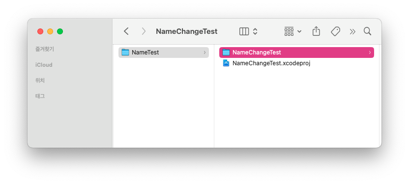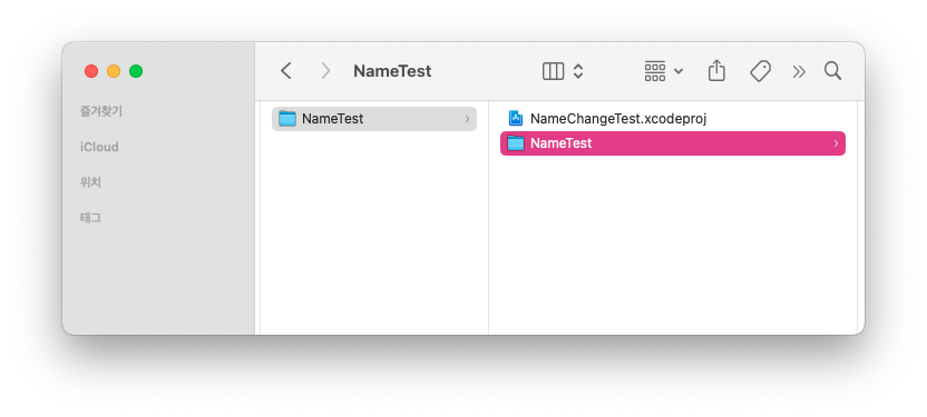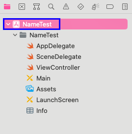 4-1. Xcode Navigator > 두 번째 폴더 선택(NameTest)