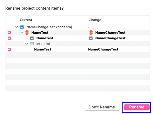프로젝트명 변경 후, Bundle Identifier도 같이 맞춰주면 좋습니다.