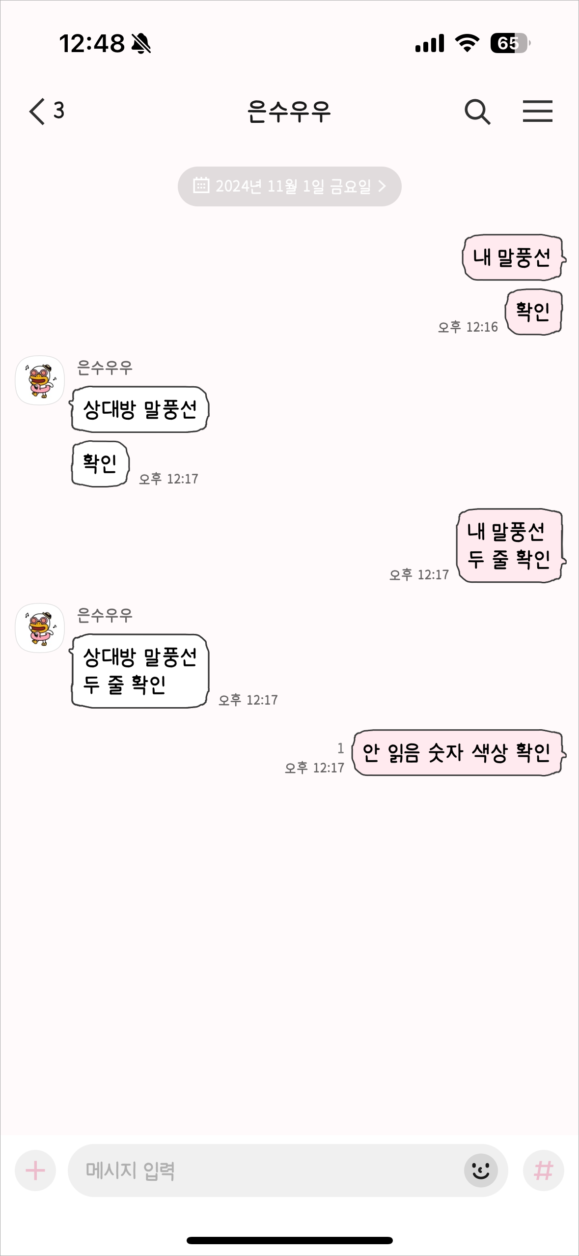 삐뚤빼뚤 말풍선 심플 분홍 카톡테마