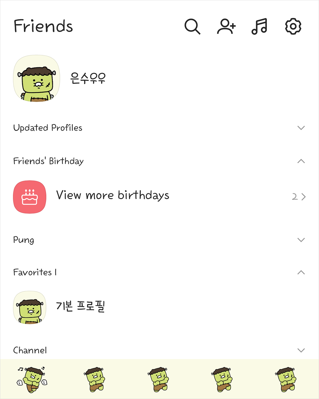 선택된 메뉴는 춤추고 있는 프랑켄슈타인 춘식이가 나타나요.