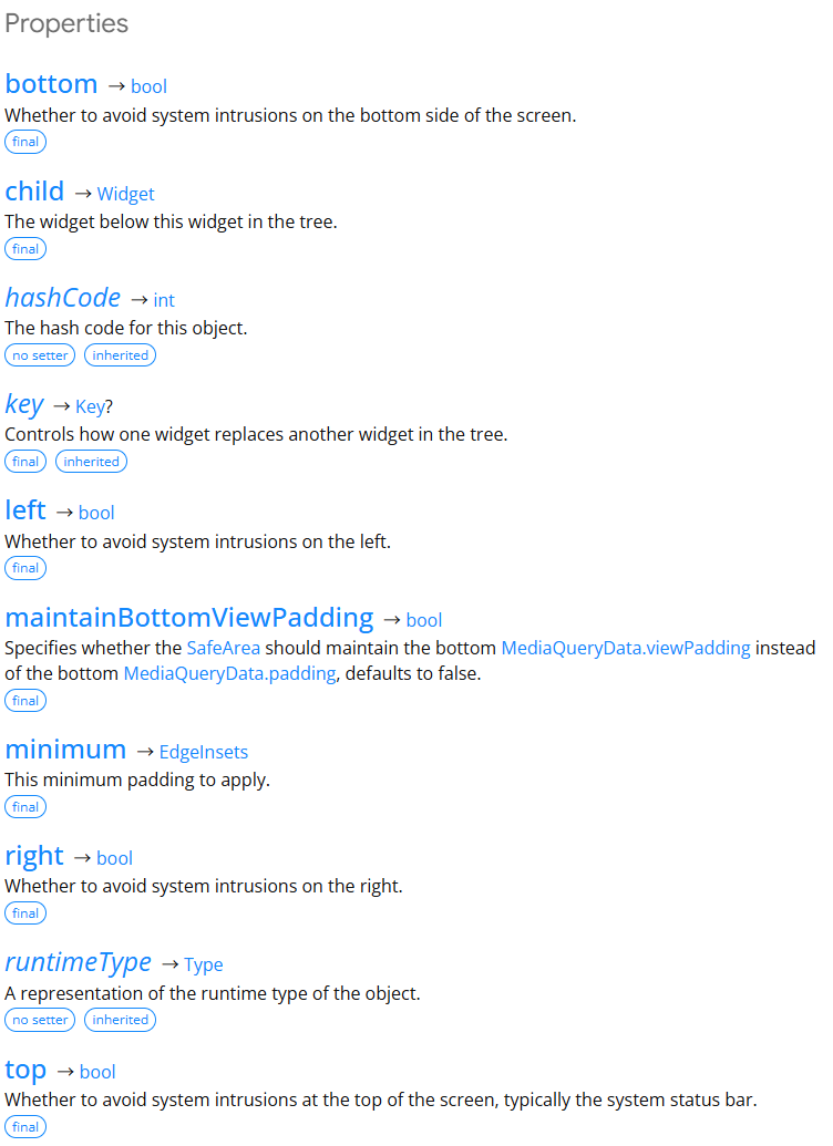 참고: https://api.flutter.dev/flutter/widgets/SafeArea-class.html